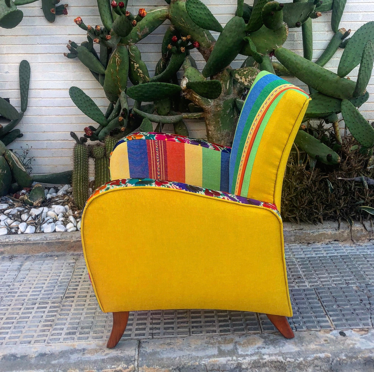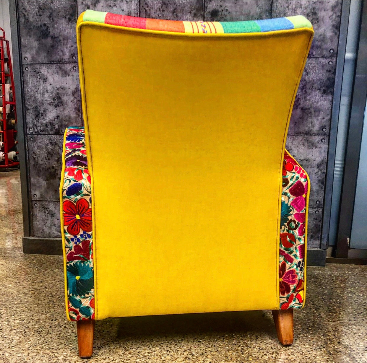 Upholstery with flowers from Chiapas and rainbow from Mexico.