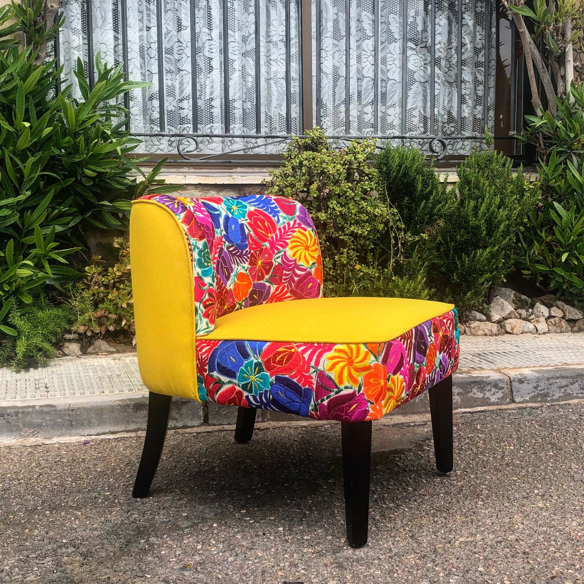 This little sofa is so full of color, that it will take over any room. Comfortable and yet special, this chair will brighten your days, rain or shine!