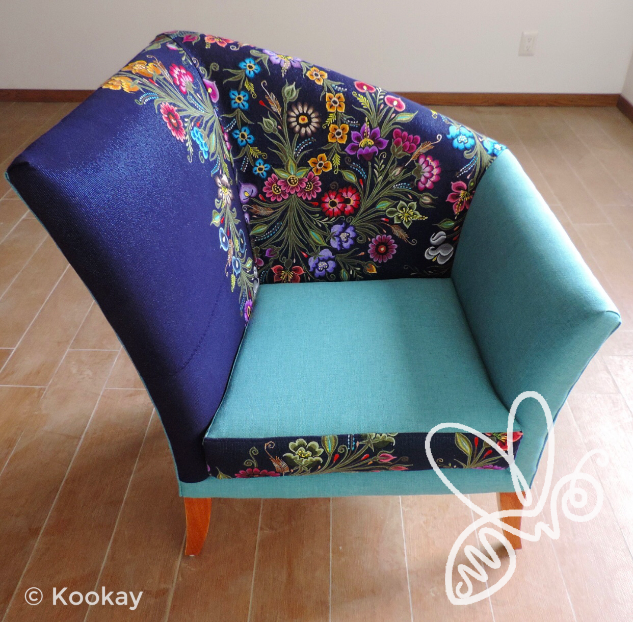 Asymmetrical lounge chair for one with flower embroidery from Chiapas. This comfortable and stylish chair will entice you and call you to sit and relax amidst the elegant flowers. Enjoy a moment of relaxation and indulge in the joy this chair brings to your home.